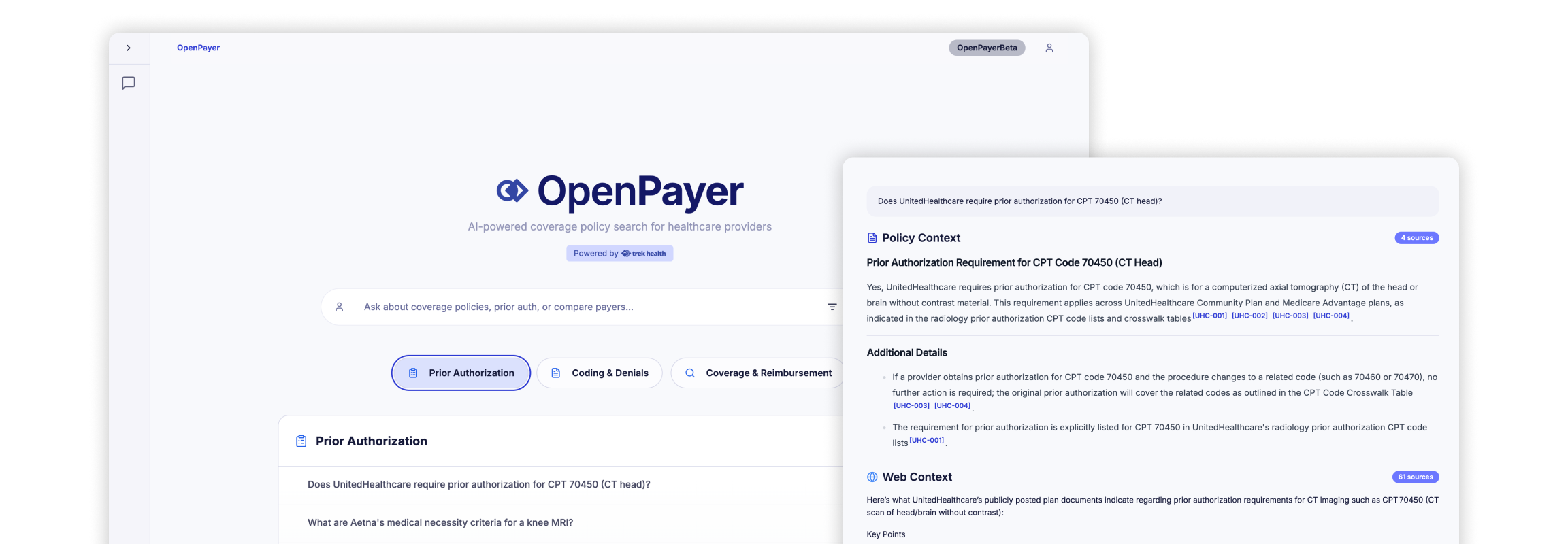Real-time payer policy intelligence for faster, safer reimbursement decisions. Stop chasing PDFs and portals. Open Payer centralizes payer medical policies, prior authorization requirements, and coverage criteria into a single searchable system. Powered by AI, it continuously ingests and structures policy documentation so teams can understand current payer requirements by CPT code, service, or payer in seconds.